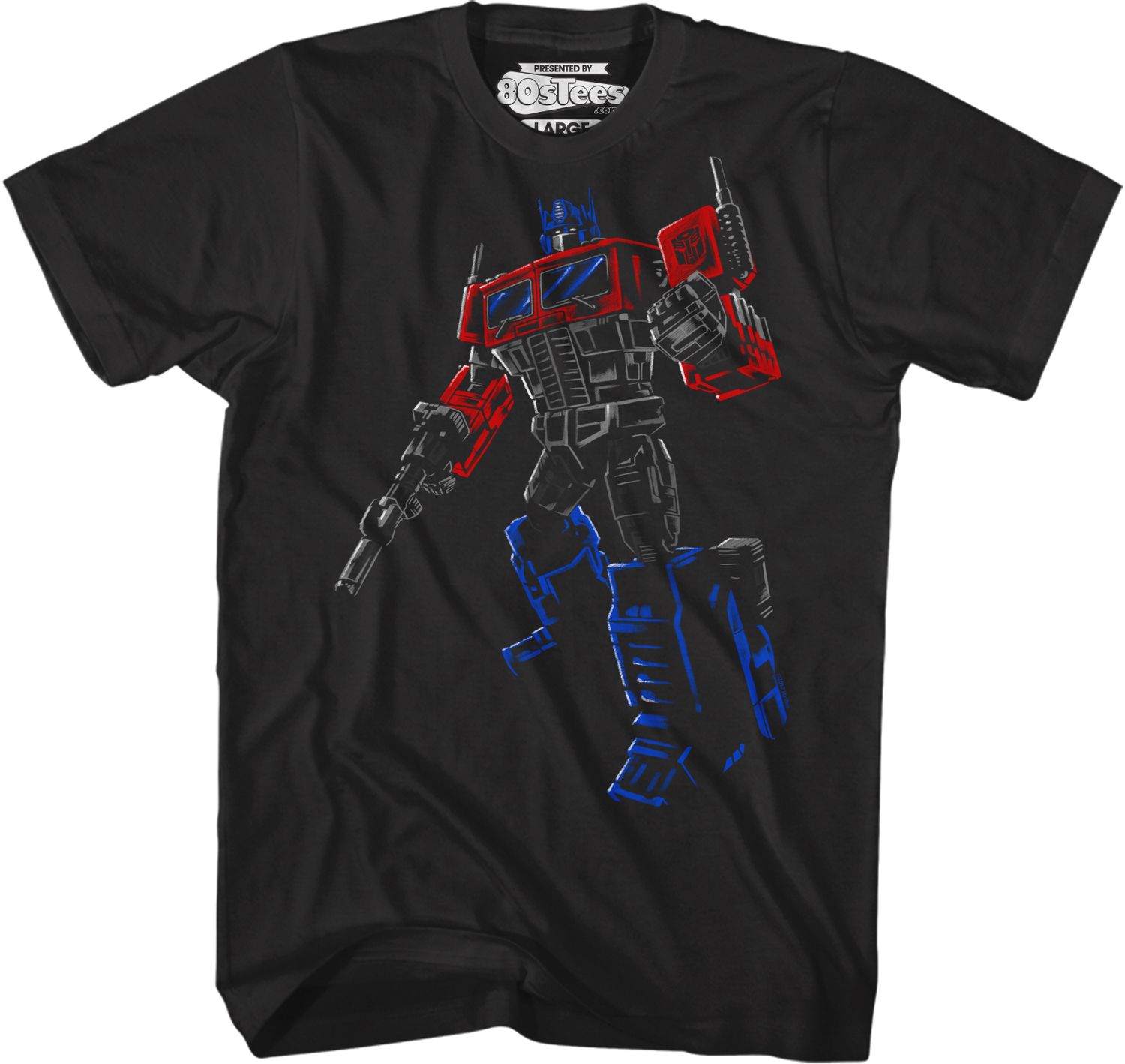 For any fan of the leader of the Autobots, this 80sTees.com exclusive Brush Stroked Optimus Prime Transformers t-shirt is a must have!
