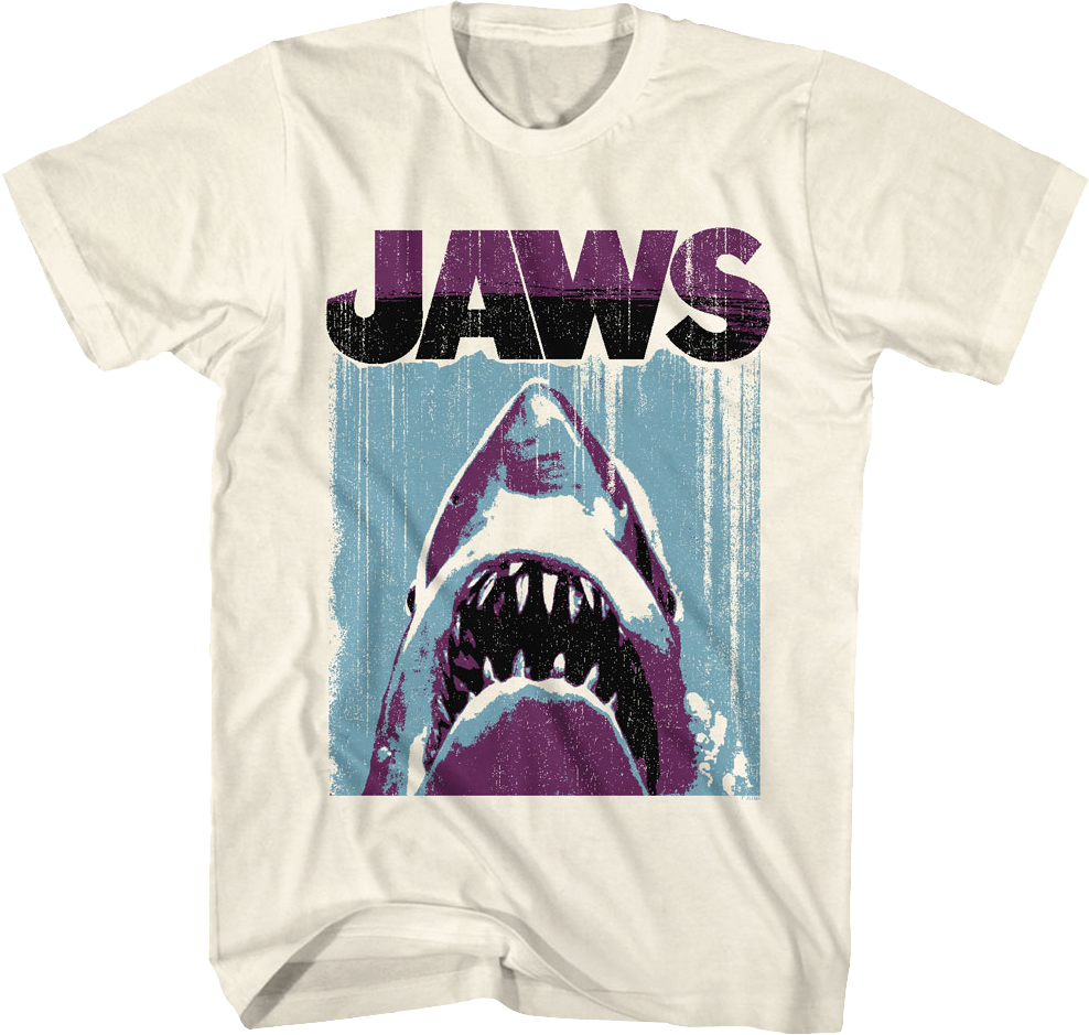 Everyone will immediately know that you are a fan of Steven Spielberg's terrifying classic when you wear this Brushstroke Poster Jaws T-Shirt!