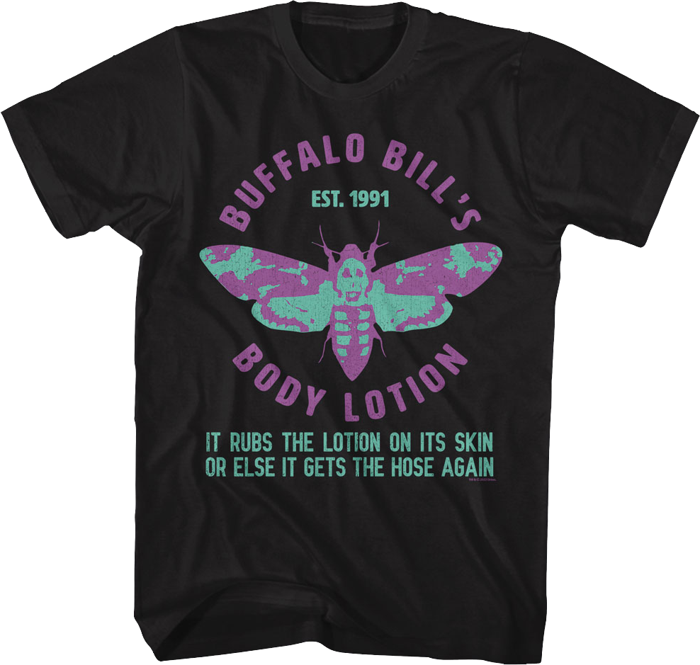 Silence of the Lambs has appeared on countless lists of the greatest psychological thrillers of all time. Now, you can show that you are a fan with this Buffalo Bill's Body Lotion Est. 1991 Silence of the Lambs T-Shirt.