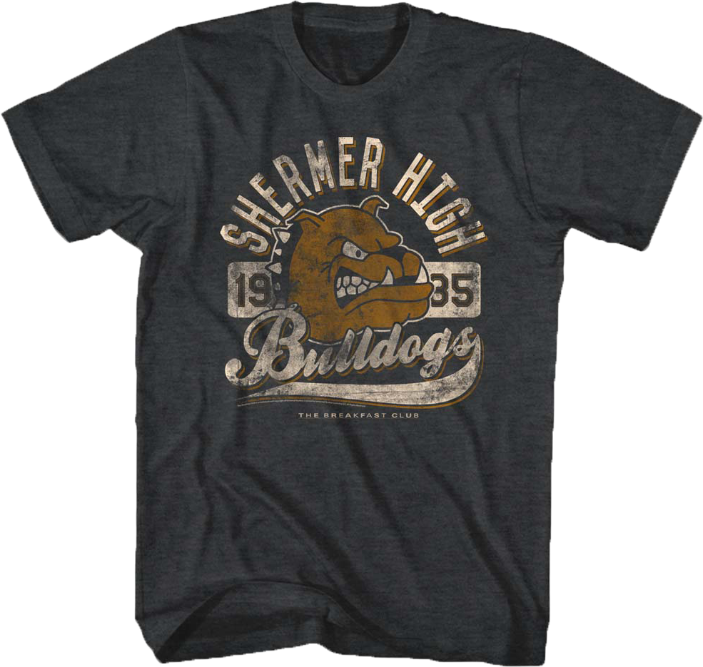 This Breakfast Club t-shirt features an image of a bulldog. This is the mascot for Shermer High, the school where five strangers spent their detention in the 1985 John Hughes classic.