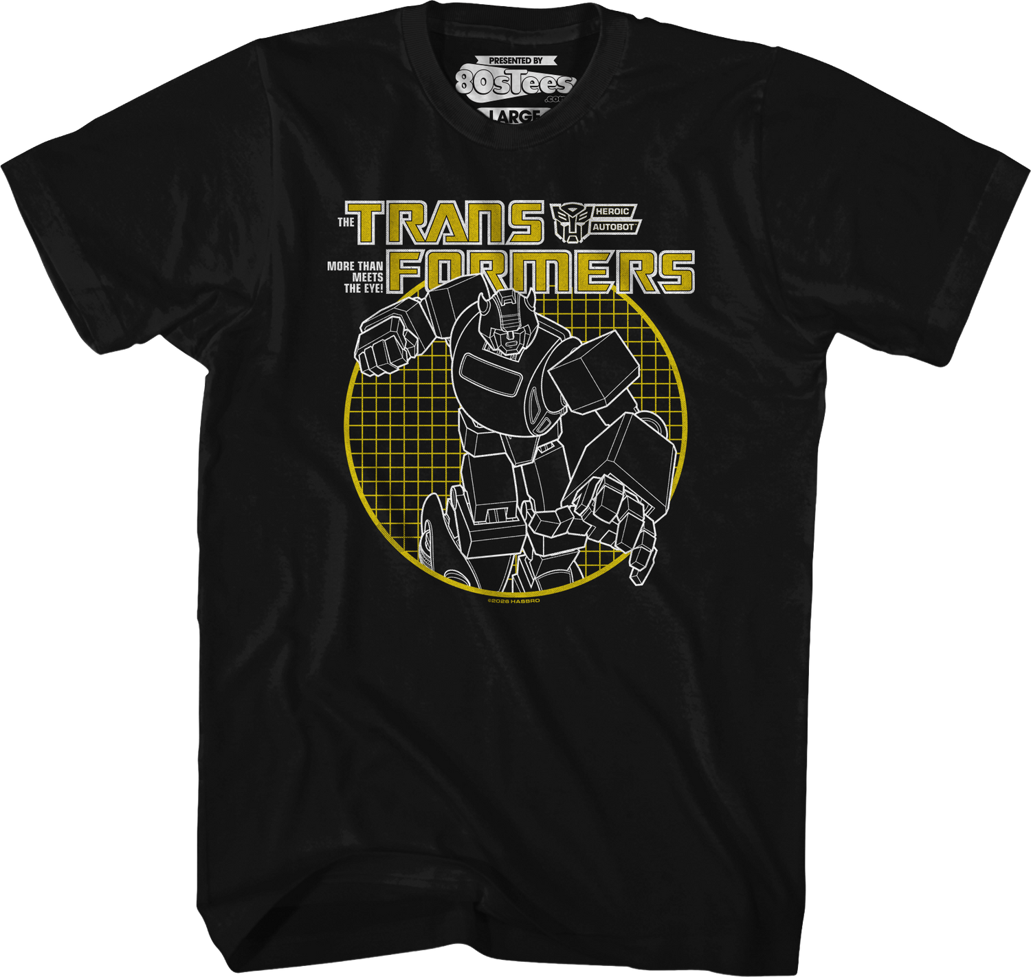 Everyone will immediately know you are a fan of the iconic Autobot when you wear this 80sTees.com exclusive Bumblebee Circle Grid Transformers T-Shirt!