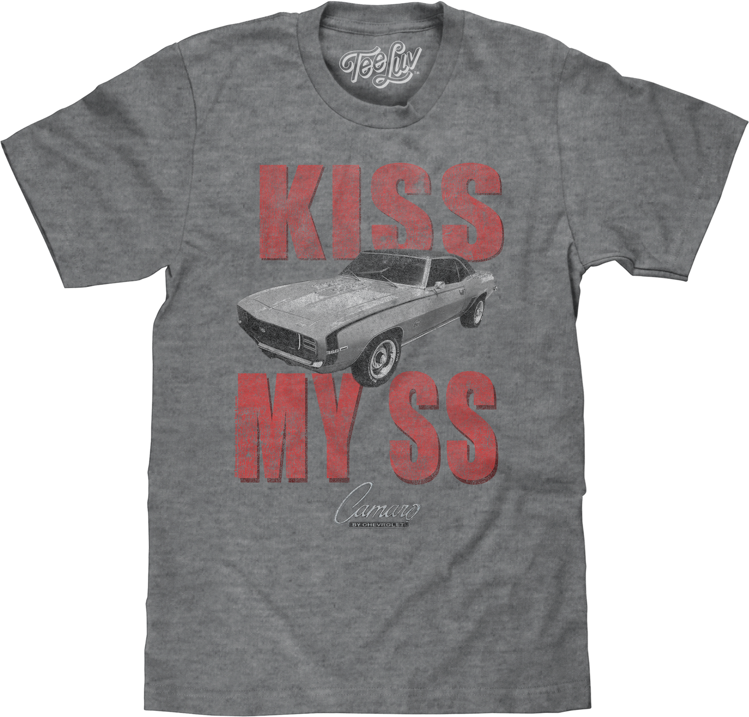 When a 455-horsepower engine propels a car that shed over 200 lbs. from its predecessor, a new benchmark of power is set. And when this power is enhanced by an arsenal of sophisticated performance technologies, drivers will experience an unparalleled sensation of agility and control. The Camaro SS is the fastest, most powerful Camaro ever, and everyone will know you are a fan when you wear this Camaro Kiss My SS Chevrolet T-Shirt!