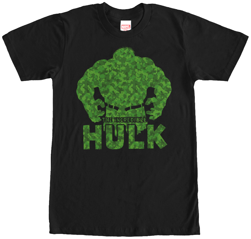 For any fan of the emotionally unstable character, this Camouflage Incredible Hulk T-Shirt is a must-have!