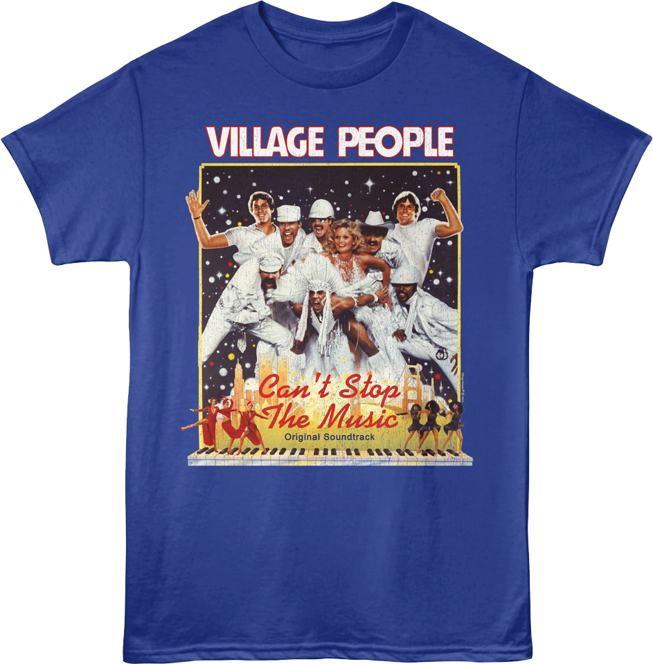 This Village People t-shirt features the cover artwork for Can't Stop the Music.
