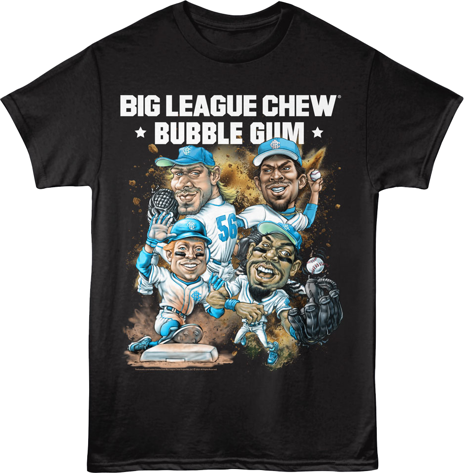 For any fan of the official bubble gum of the Baseball Hall of Fame, this Caricatures Big League Chew T-Shirt is a must have!