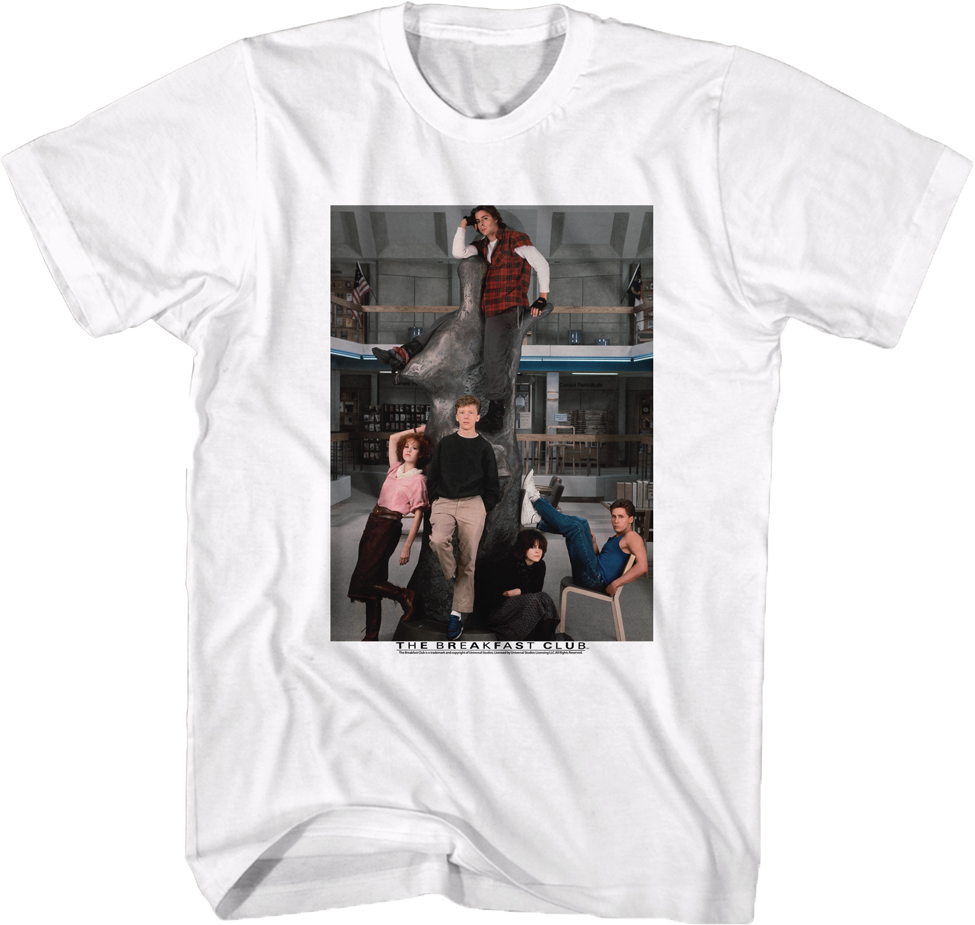 The image on this t-shirt was taken in the Shermer High library, where the five characters started as strangers, but ended their detention as the Breakfast Club.