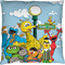 This Sesame Street throw pillow features Cookie Monster, Oscar The Grouch, Big Bird, Bert, Ernie, Elmo and Little Bird. Rest easy with these characters that made Sesame Street one of the most popular educational programs of all time each time you lay your head on this 18" x 18" Cast of Sesame Street throw pillow!