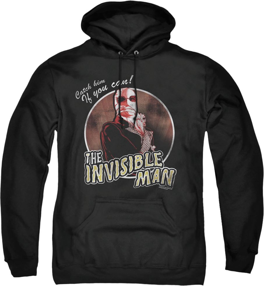 The Invisible Man is one of the truly great classics of the golden age of horror movies. Everyone will know you are a fan when you wear this Catch Him If You Can Invisible Man Hoodie!