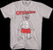 All of the ailing parts from the beloved game are shown on this Cavity Sam Operation T-Shirt. The Adam's apple, broken heart, wish bone, funny bone, spare ribs, butterflies in stomach, writer's cramp, ankle bone connected to the knee bone, water on the knee, and wrenched ankle are all shown inside of Sam's body. He's pictured with his red nose and a thermometer in his mouth.