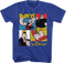 This Popeye t-shirt features images of the iconic characters Popeye the Sailorman, Bluto, Wimpy, and Olive Oyl.