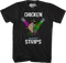 Chickens will go to great lengths and perform incredible acts to avoid ending up on a dinner plate. These include performing energized strip shows. Everyone will know you are a fan of the short-winged bird when you wear this 80sTees.com exclusive Chicken Strips T-Shirt!