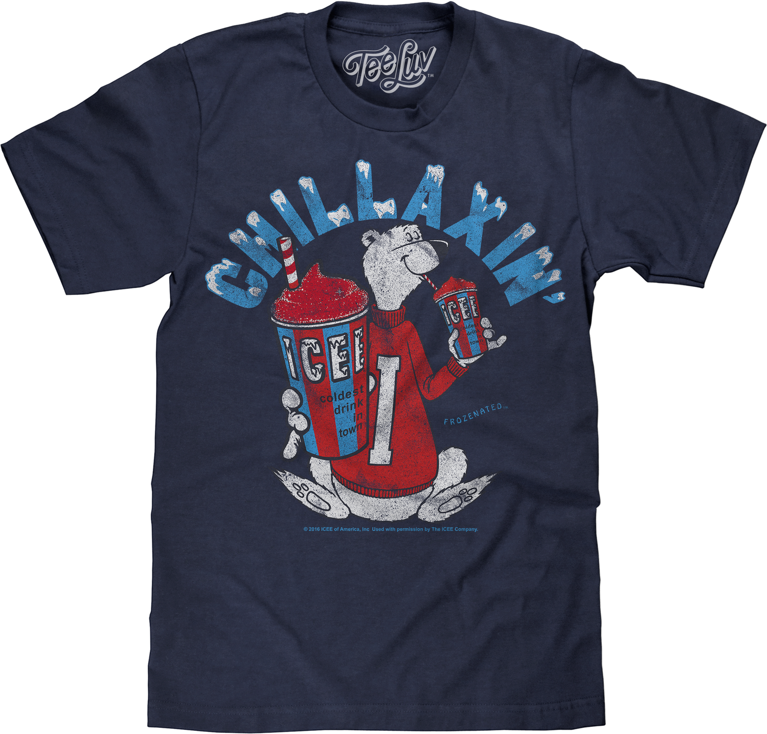 This ICEE t-shirt features an image of the frozen beverage's polar bear mascot. The shirt reads Chillaxin'.