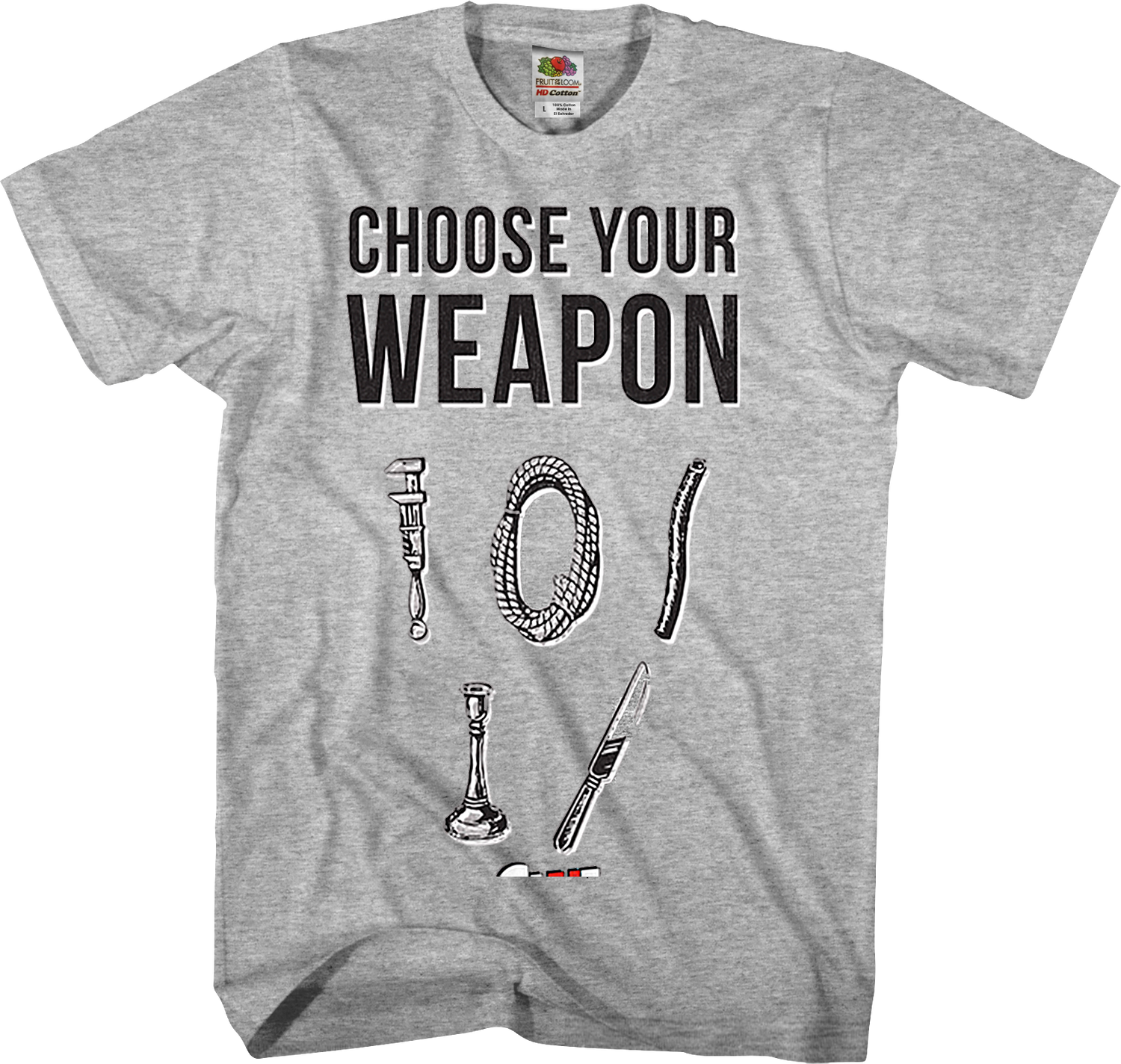 For any fan of the classic murder mystery game, this Choose Your Weapon Clue T-Shirt is a must have!