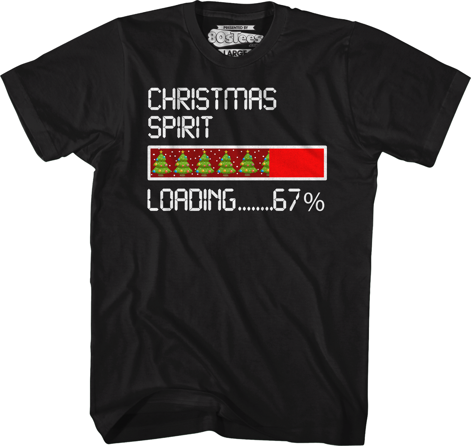 There are many reasons for people to lose their Christmas spirit, from stress to loneliness to shopping fatigue. Once they are surrounded by their families and friends, their Christmas spirit begins to load again. Everyone will know you are getting ready for a holly jolly Christmas when you wear this 80sTees.com exclusive Christmas Spirit Loading T-Shirt!