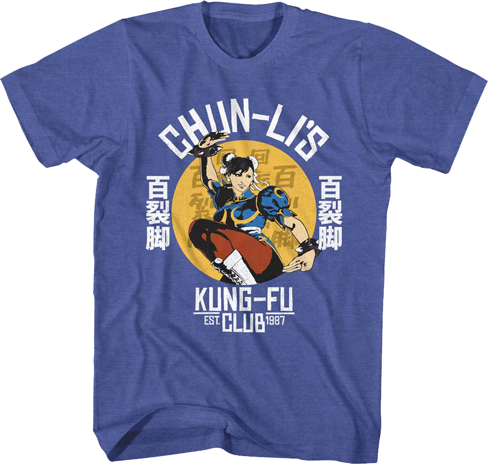 Let everyone know that you train to be just as strong as the first female fighter in the Street Fighter series with this Chun-Li's Kung-Fu Club Street Fighter T-Shirt.