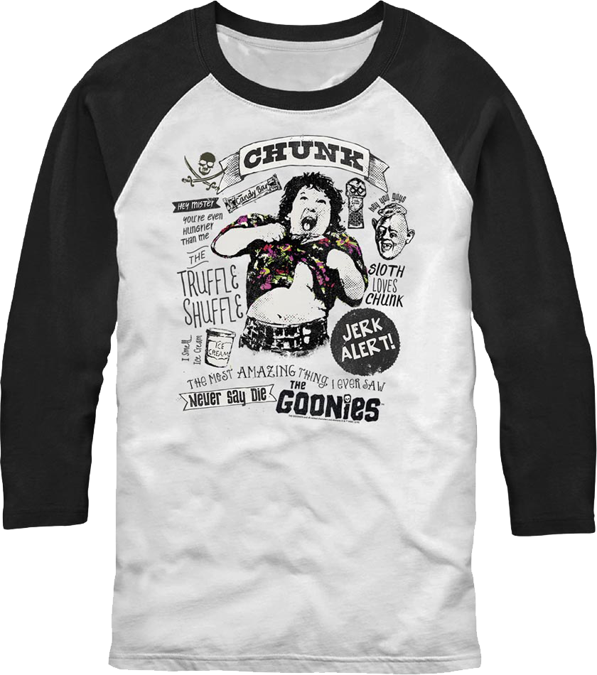 You'll have everyone doing the Truffle Shuffle when they see you wearing this Chunk Collage Goonies Raglan Baseball Shirt!