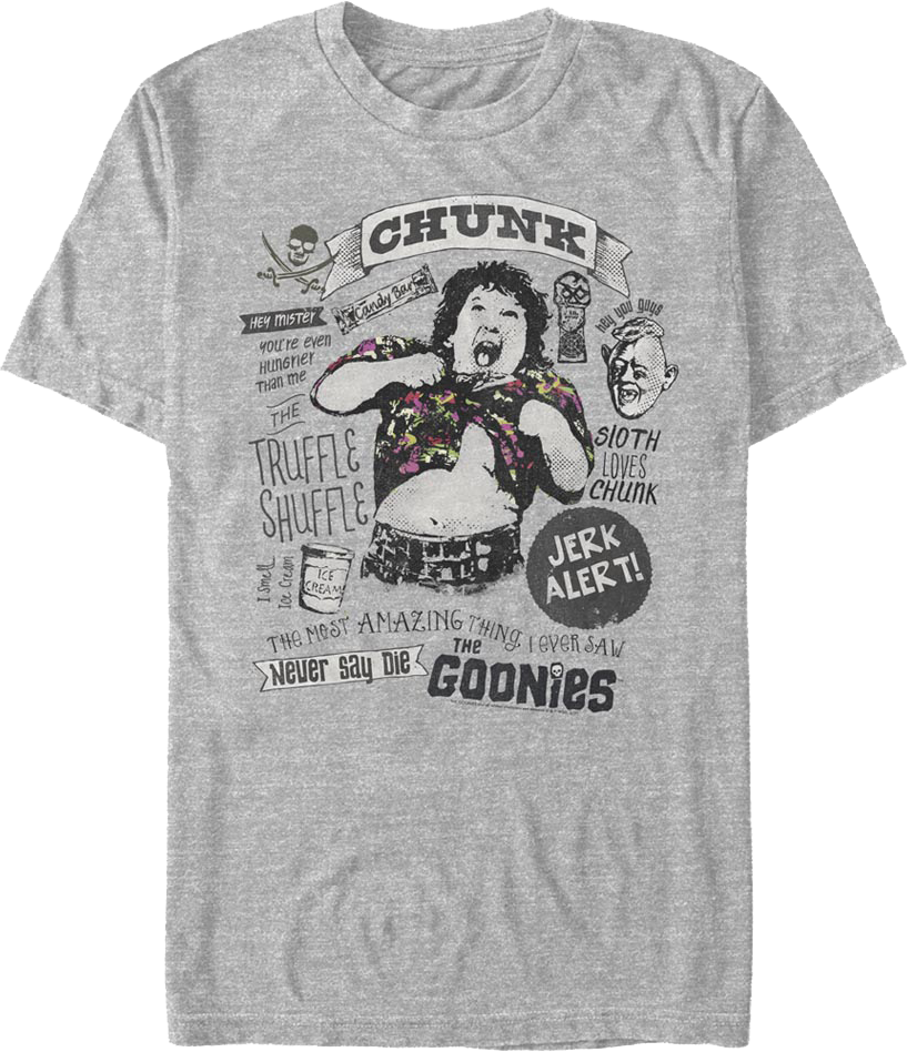 You'll have everyone doing the Truffle Shuffle when they see you wearing this Chunk Collage Goonies T-Shirt!