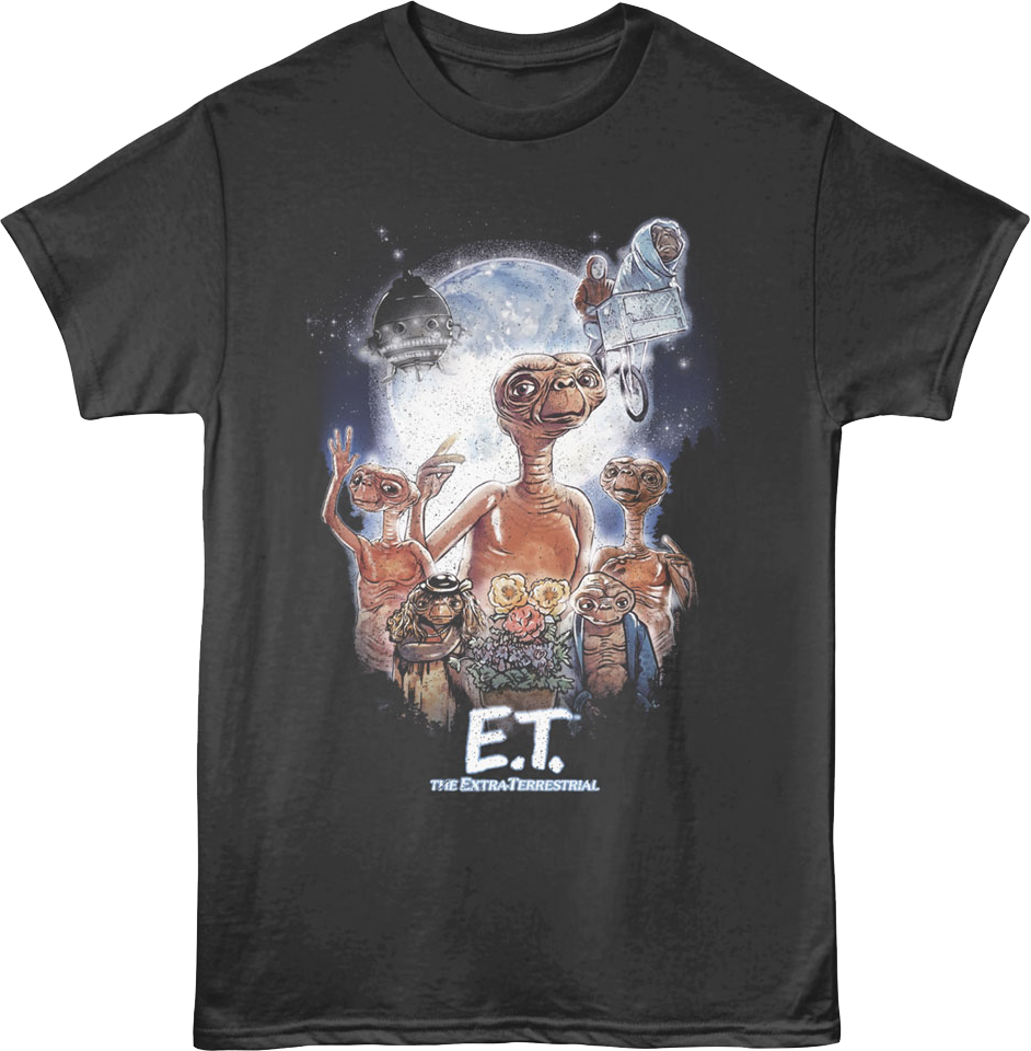 Everyone will know you are a fan of Steven Spielberg's unforgettable masterpiece when you wear this Classic Collage E.T. The Extra-Terrestrial T-Shirt!