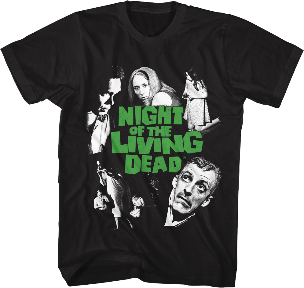 Everyone will immediately know you are a fan of George A. Romero's 1968 zombie masterpiece when you wear this Classic Collage Night Of The Living Dead T-Shirt!