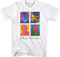 With the release of Frankenstein in 1931, Universal Pictures started unleashing some of the most frightening monsters of all time during the golden age of horror movies. Universal's most popular monsters appear on this t-shirt in pop art images. The shirt shows Frankenstein's monster, the Bride of Frankenstein, the Mummy, and the Creature from the Black Lagoon.