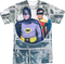 This Batman t-shirt features an image of the Caped Crusader and the Boy Wonder in front of a collage of black and white images from the classic 1960s Batman series. The back of the shirt shows more images and the logo from the iconic series.