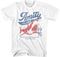 This Jaws t-shirt features a great white shark on an invitation for swimmers to visit Amity Island. The shirt promises Clear Skies, Gentle Surf, Warm Water.
