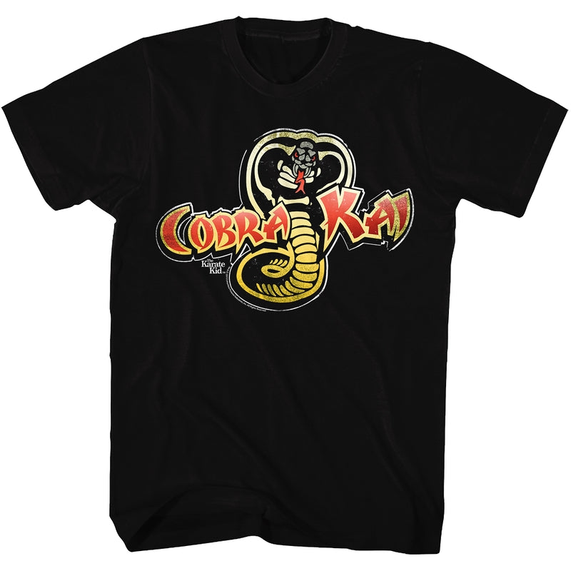 This Karate Kid t-shirt features the logo for Cobra Kai, a doji that was run by the merciless John Kreese.