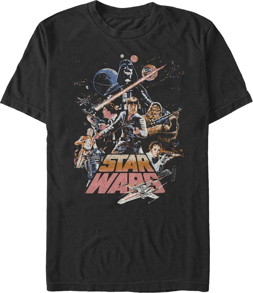 Star Wars is a franchise for generations growing up without fairy tales. Let everyone know that you are a fan with this Collage Poster Star Wars T-Shirt!