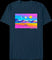 This Star Wars t-shirt features a colorful image that shows the silhouettes of C-3PO and R2-D2 watching the Millennium Falcon taking flight on the planet Tatooine.
