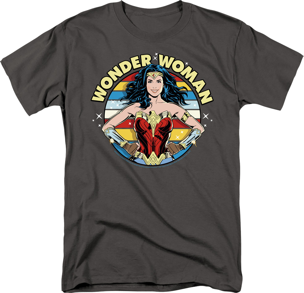 Raised on the hidden island of Themyscira, also known as Paradise Island, Wonder Woman was her people's gift to humanity. For decades, Wonder Woman has stood as a symbol of truth, justice and equality to people everywhere. Now, you can show that you are a fan with this Colorful Pose Wonder Woman T-Shirt!