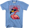 This 80sTees.com exclusive t-shirt shows a flamingo wearing sunglasses and a backwards baseball cap.