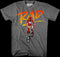 In Rad, Cru Jones was a BMX racer who wanted to race at Helltrack, but the president of The Federation of American Bicyclists kept adjusting the rules to keep Cru out of race and to ensure that Bart Taylor won the race. Cru was about to give up on his dream until his sister gave him the Rad racing shirt that can be seen on this t-shirt. With a newfound inspiration, Cru went on to defeat Bart at Helltrack.