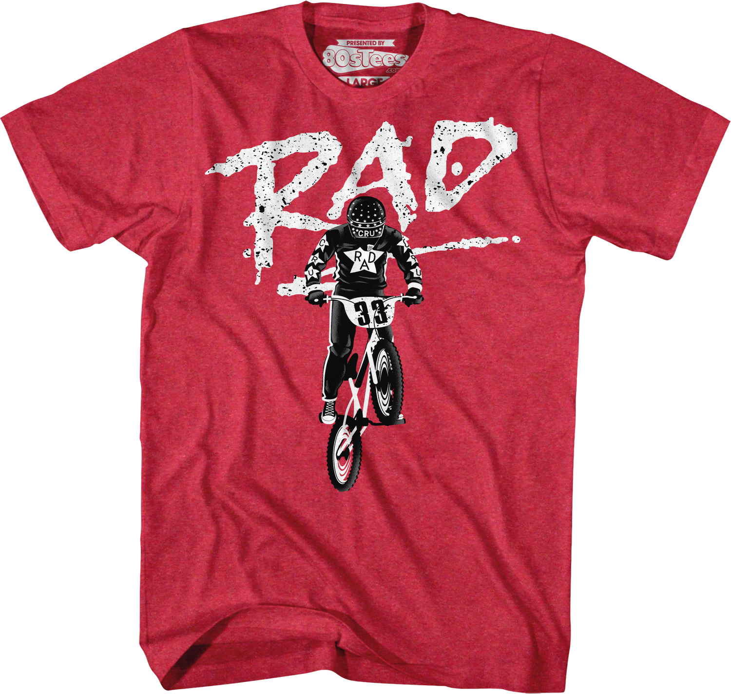 If you want to show that you are a fan of the 1986 classic or if you want to perform freestyle bike stunts on the dance floor, this 80sTees.com exclusive Cru Jones Silhouette Rad T-Shirt is a must have!