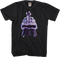 This Battlestar Galactica t-shirt shows the helmet for a Cylon, or Cybernetic Lifeform Node, a robot race that battled a rag-tag fugitive fleet on a lonely quest.