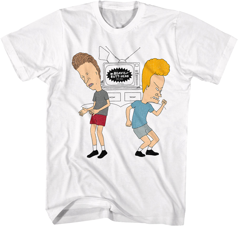 This Beavis And Butt-Head t-shirt shows the teenage delinquents dancing while their television is on in the background.