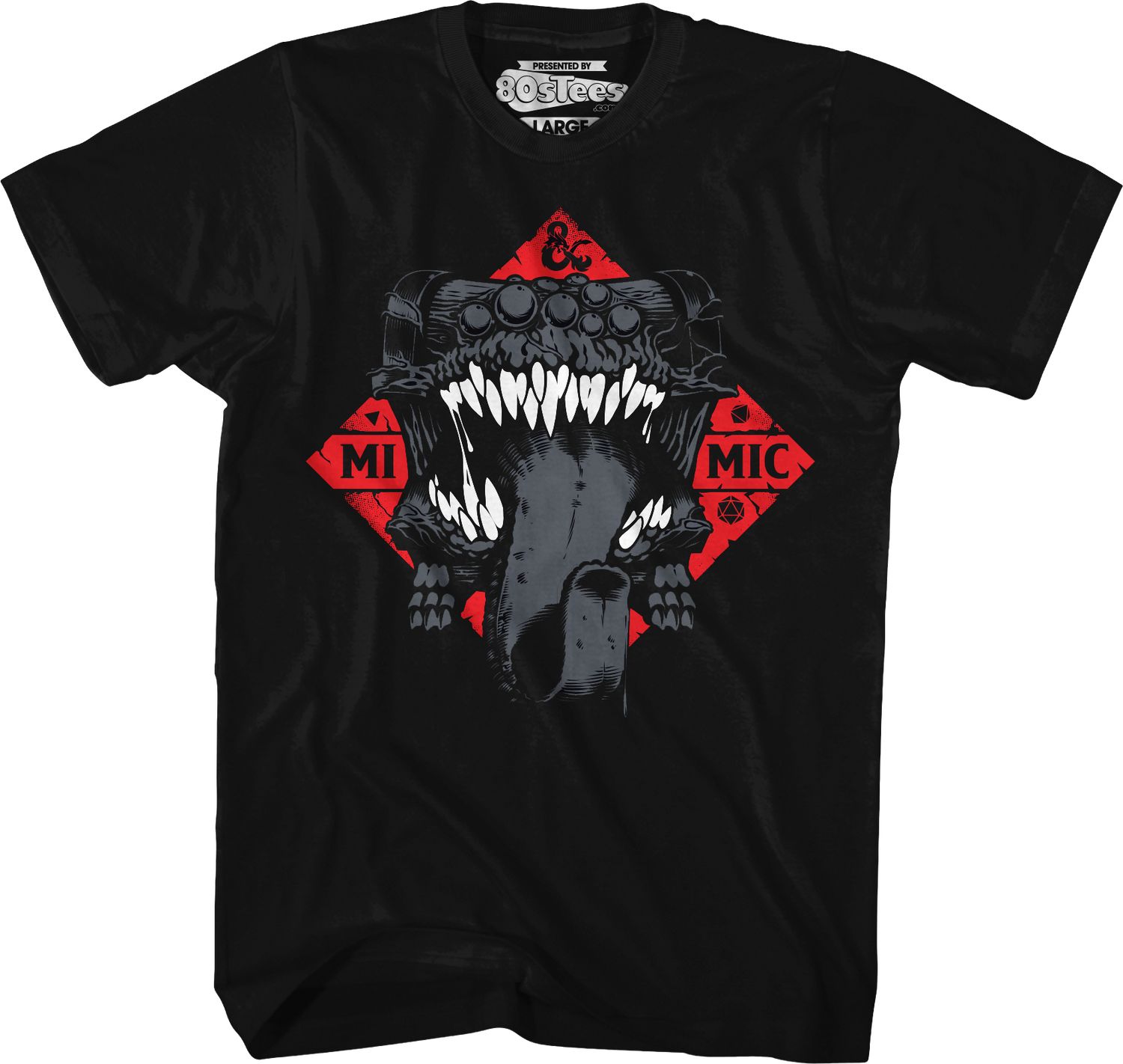 For any fan of the shapechanging Monstrosity, this 80sTees.com exclusive Dark Mimic Dungeons & Dragons T-Shirt is a must have!