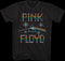 Since its release in 1973, the Pink Floyd album The Dark Side of the Moon has appeared on countless Christmas lists. This Pink Floyd t-shirt features the cover artwork for The Dark Side of the Moon in a design that looks like it belongs on an ugly Christmas sweater. The design includes snowflakes, a prism with a wave of light that splits into rainbow colors, and the band name Pink Floyd filled in with rainbow colors.