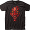 Darth Maul is instantly recognizable with his red and black face paint and tattoos, and his red and yellow eyes. Everyone will know you are a fan when you wear this Darth Maul Face Paint Star Wars T-Shirt!