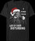 This Star Wars t-shirt shows the Sith Lord Darth Vader wearing a Santa Claus hat and ready to perform a force choke. The shirt reads I Find Your Lack Of Cheer Disturbing.