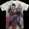 This DC Comics t-shirt features an image of the imperfect duplicate of Superman, Bizarro posing in front of the Daily Planet building. The back of the shirt shows Bizarro flying above Metropolis.