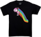 This Deadpool t-shirt shows the Merc with a Mouth riding a unicorn that is leaving behind the trail of a colorful rainbow. The back of the shirt shows Deadpool riding the unicorn up in the clouds.