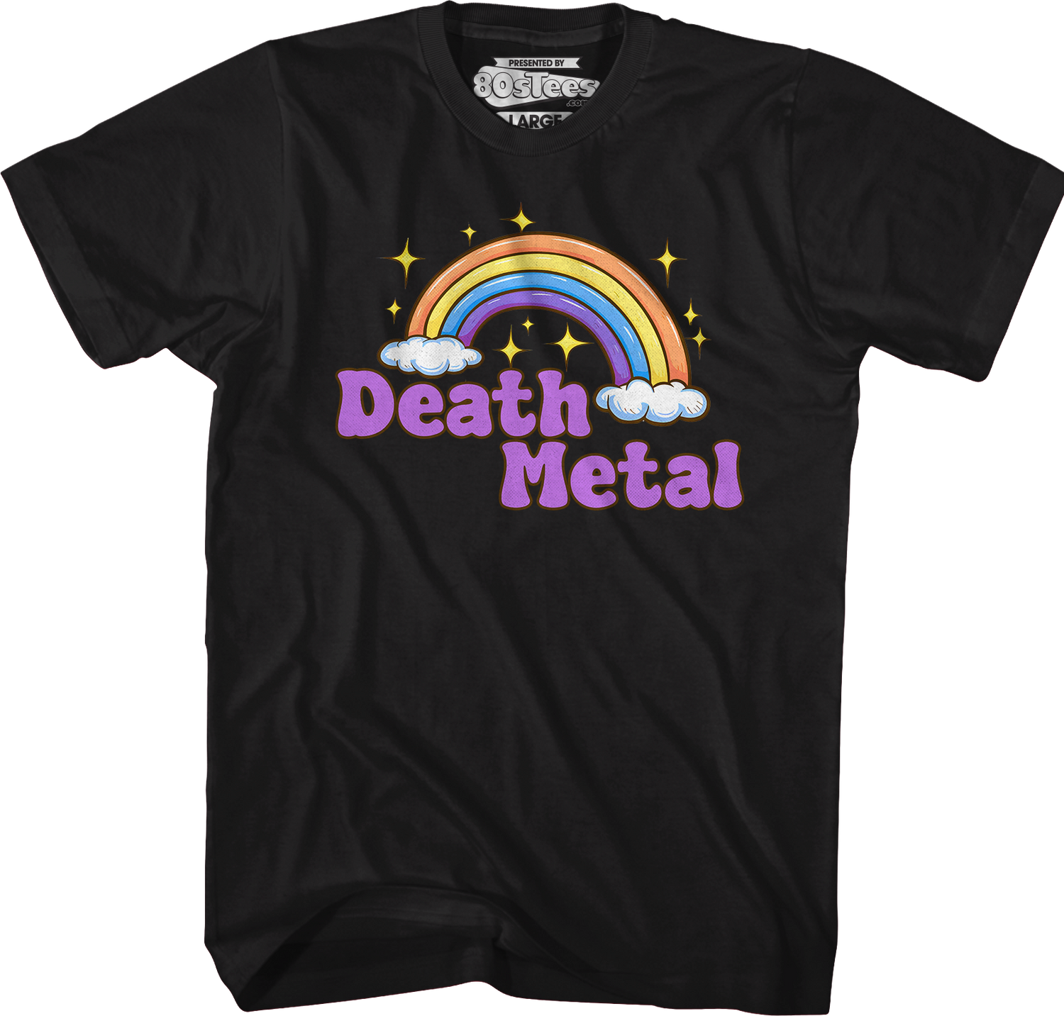 Death metal has a worldwide following that is always growing, and now you can show that you are a fan with this 80sTees.com exclusive Death Metal Rainbow T-Shirt!
