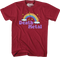 This 80sTees.com exclusive t-shirt features a rainbow surrounded by stars. The shirt reads Death Metal.
