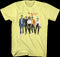 This B-52s t-shirt features the cover artwork for the band's self-titled debut album. The cover features band members Fred Schneider, Ricky Wilson, Kate Pierson, Keith Strickland, and Cindy Wilson.