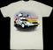 This Back To The Future t-shirt features an image of Doc Brown's DeLorean with its gull-wing doors open.