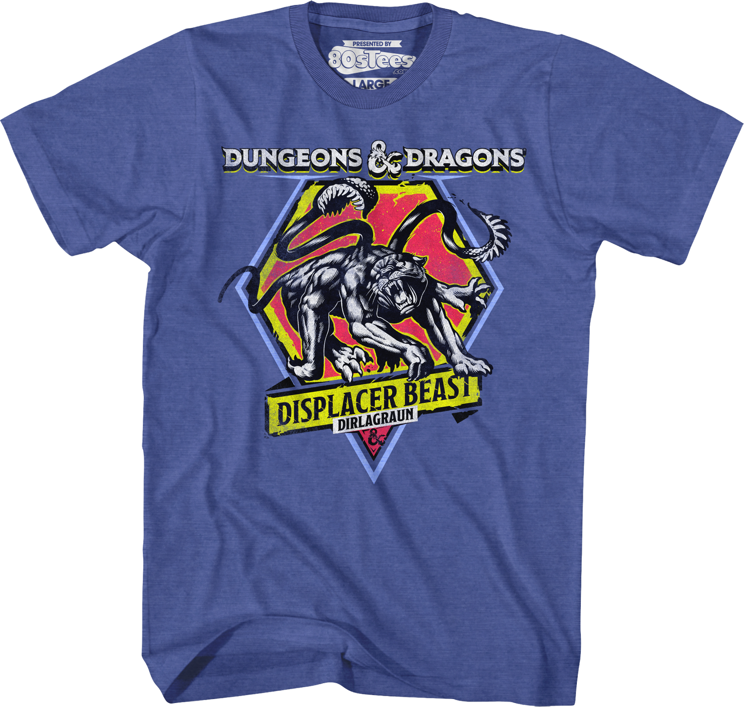 This 80sTees.com exclusive Dungeons & Dragons t-shirt features an image of a displacer beast, also known as a dirlagraun.