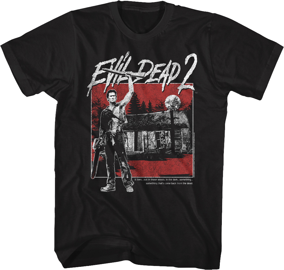 Let everyone know you are a fan of Sam Raimi's 1987 classic starring Bruce Campbell with this Distressed Cabin Evil Dead T-Shirt!