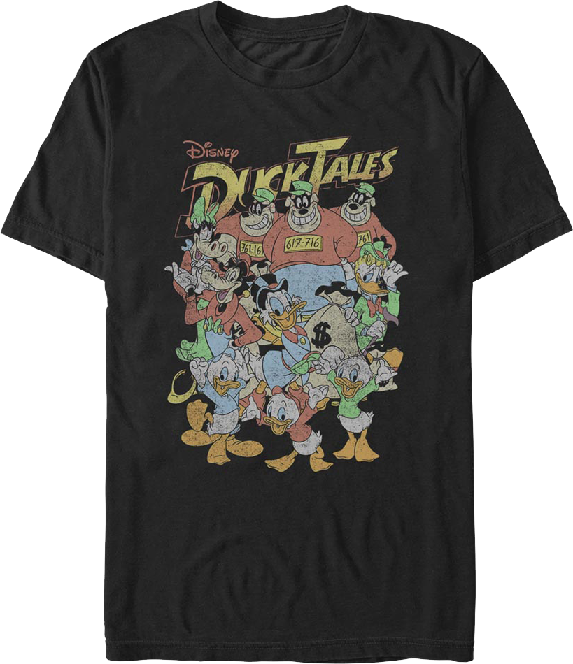 For any fan of these hilarious and unforgettable characters from the classic Disney animated series, this Distressed Cast Picture DuckTales T-Shirt is a must have!