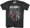 This shirt shows Cobra Commander, Baroness, Storm Shadow, a Cobra H. I. S. S. Driver, Destro and a Cobra Viper Pilot. When these characters join forces, they make a powerful team and a great challenge for the real American heroes in each episode of GI Joe!