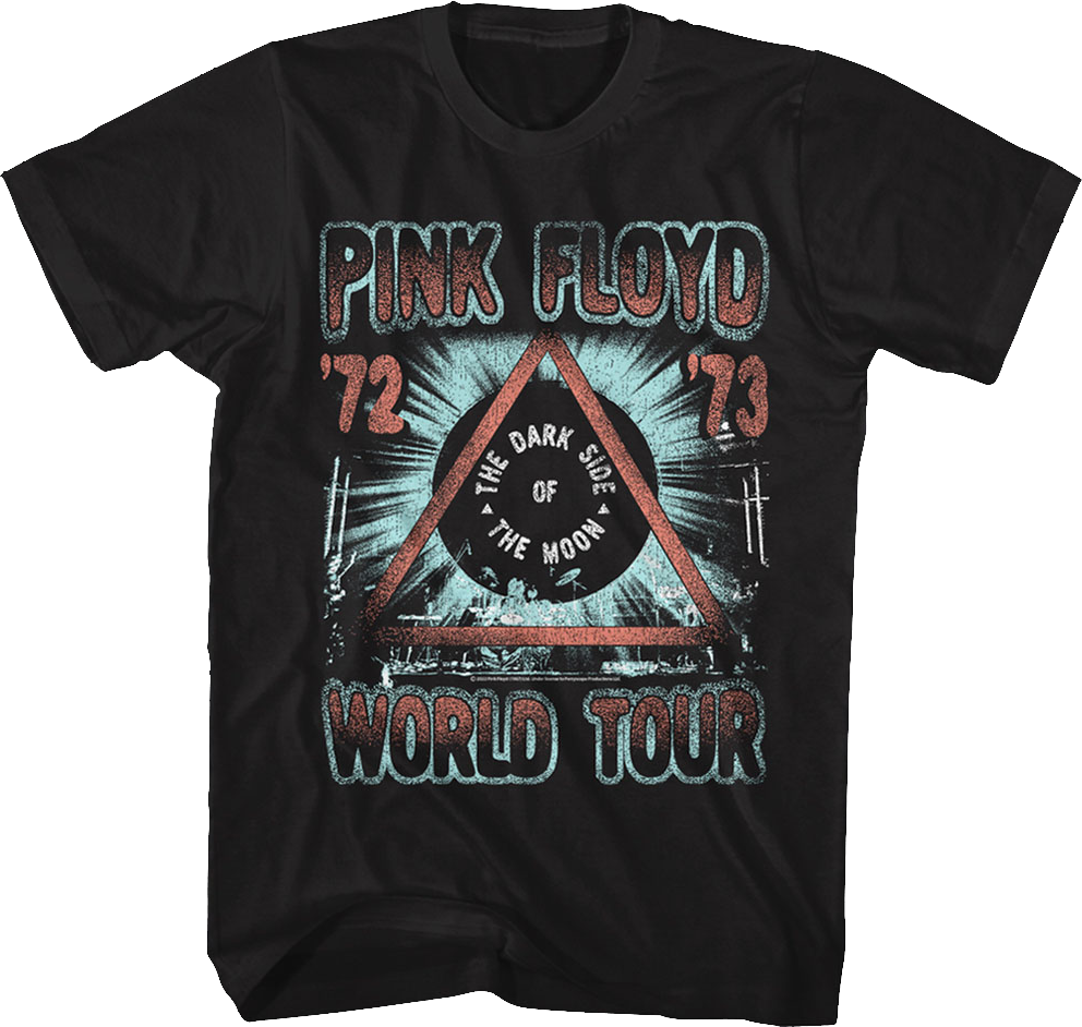 The Dark Side of the Moon has consistently remained one of the most popular and best-selling rock albums of all time, and now you can show that you are a fan with this Distressed Darks Side of the Moon World Tour Pink Floyd T-Shirt!